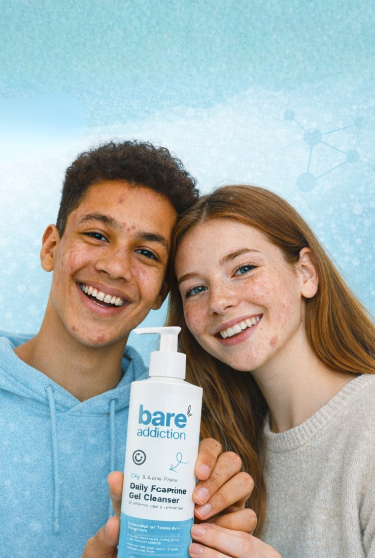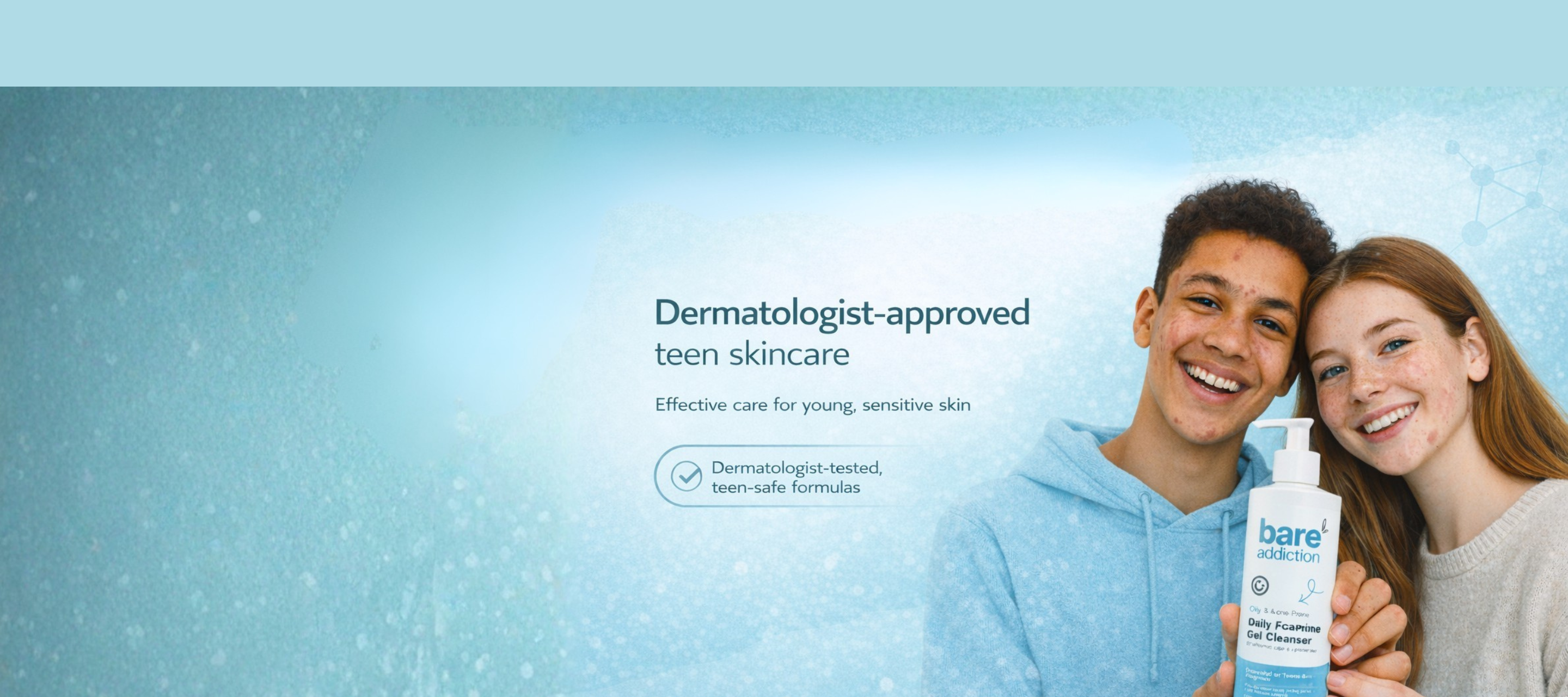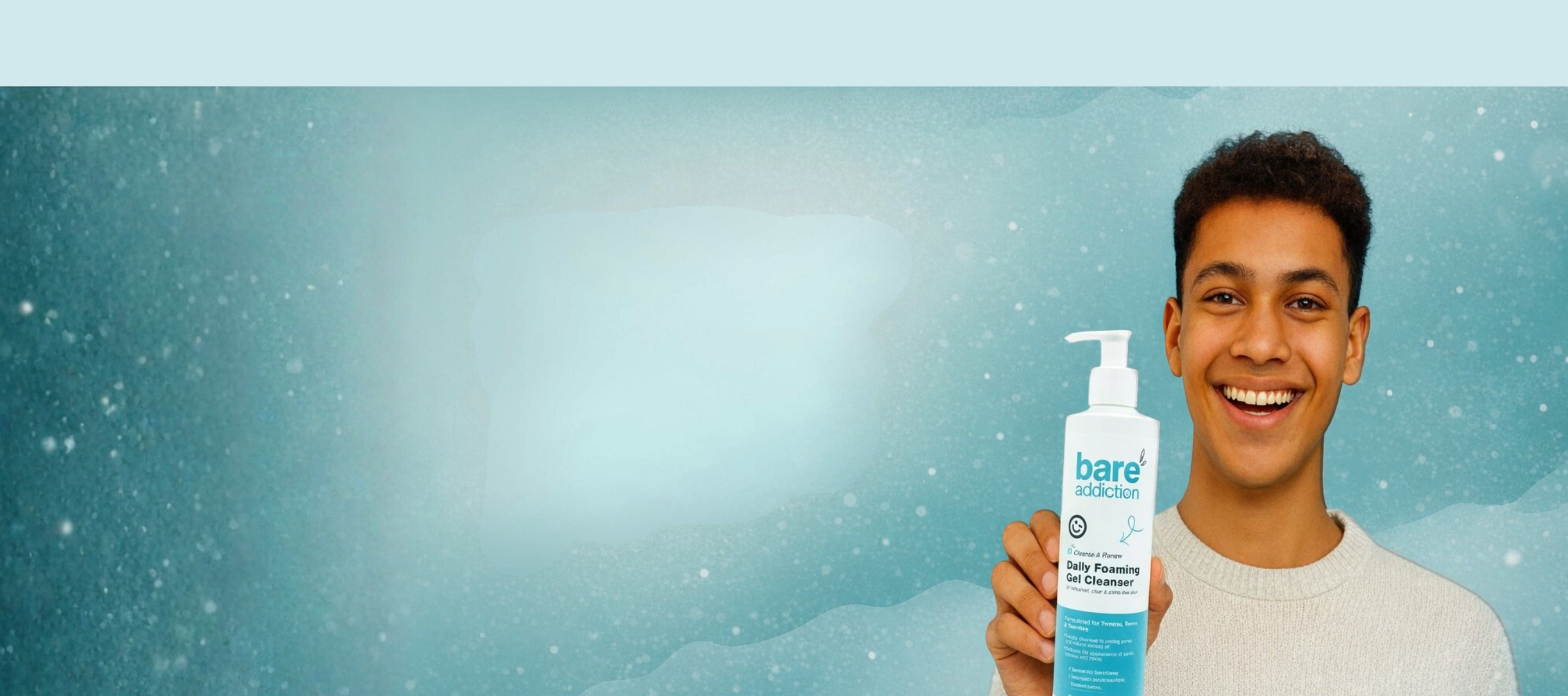 Bare Addiction was founded by a teen, who himself struggled with acne & low self-confidence — and was tired of harsh, ineffective skincare made for adults.